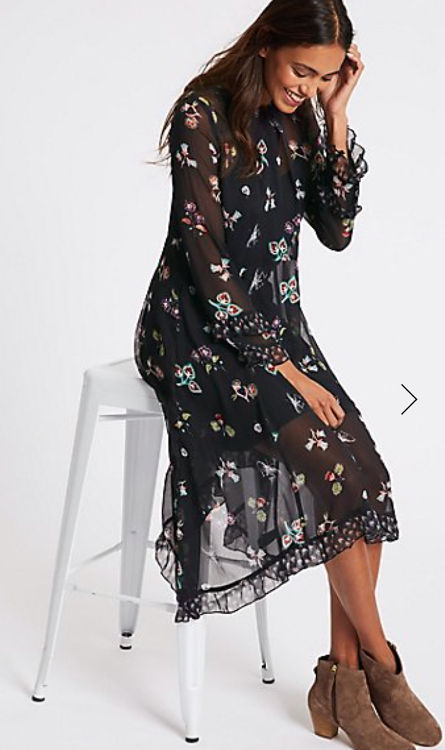 M&S COLLECTION Floral Print Hanky Hem Midi Dress