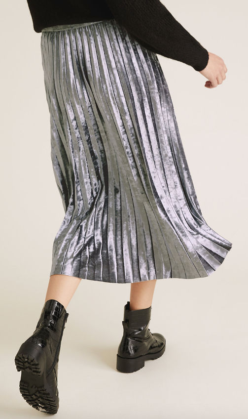 M&S COLLECTION Jersey Velvet Pleated Midi Skirt T42/4338